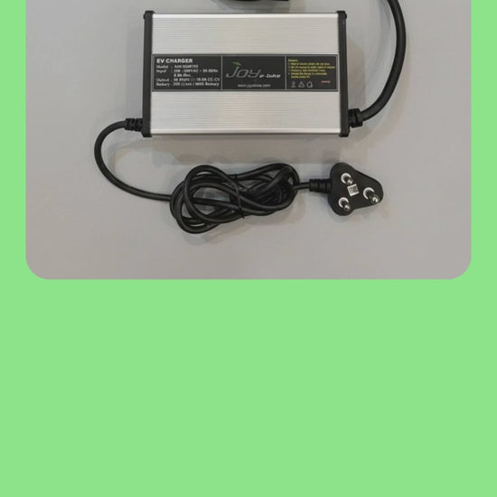 Original Joy E-Bike EV Charger (Model A6AK840100), manufactured by Accord Power. This premium smart charger is designed for high-performance electric scooters like the Joy E-Bike Mihos. It delivers a powerful 84V 10A output using a CC-CV (Constant Current - Constant Voltage) charging profile, specifically engineered for 20S Li-Ion / NMC Battery packs.